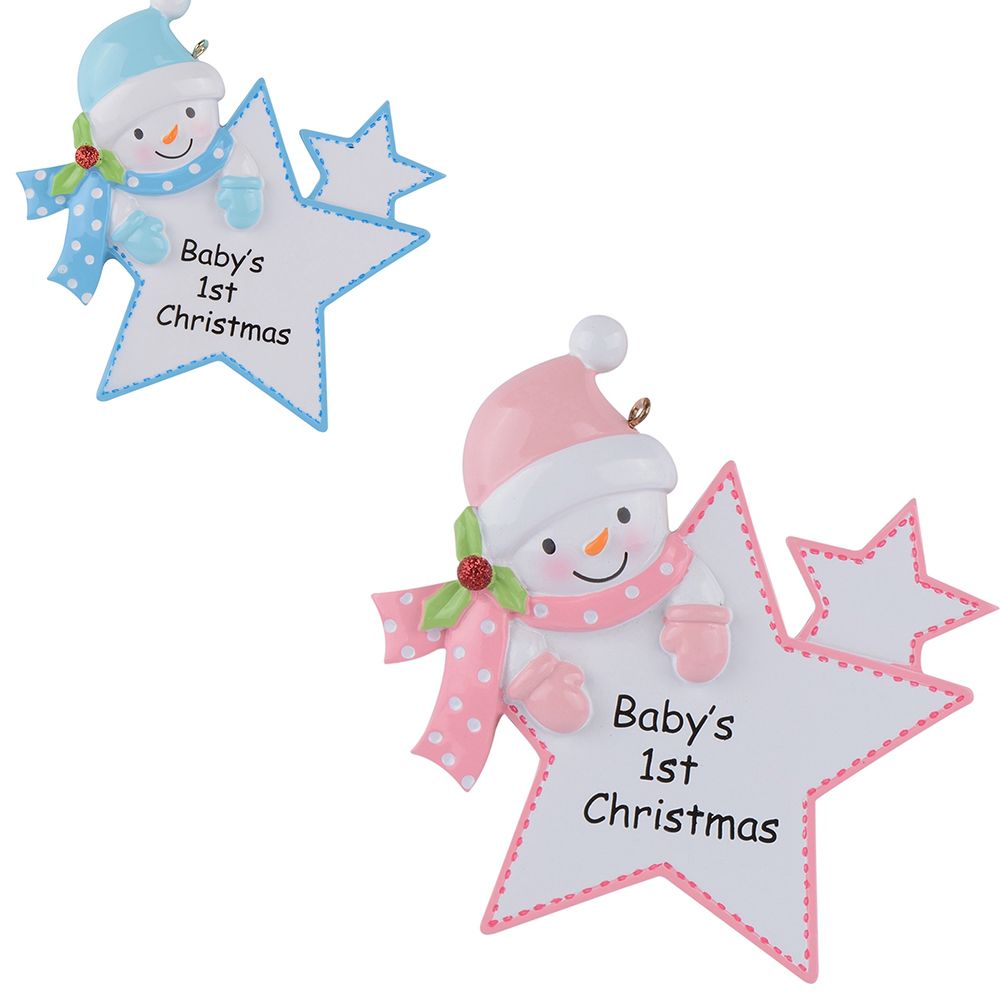 Maxora Personalized Baby First Christmas Ornaments Blue Boy Pink