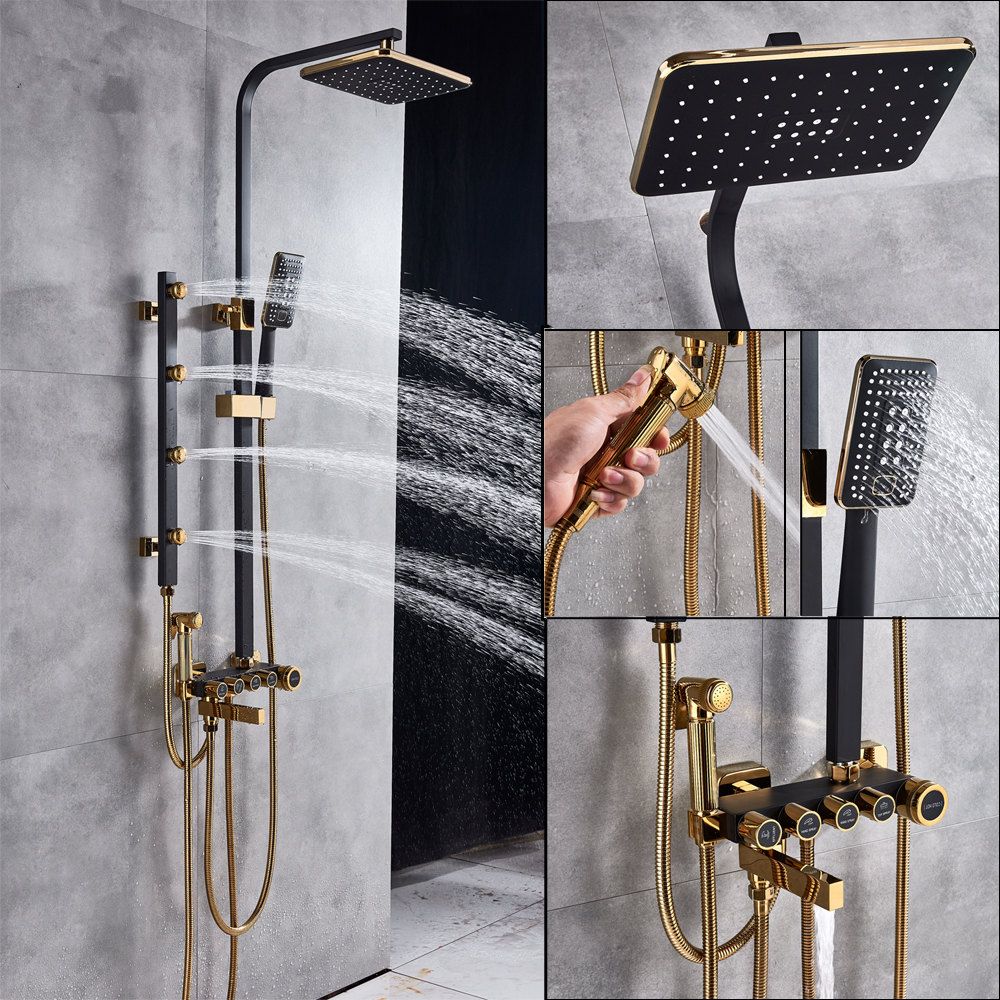 Black Exposed Shower Set Bathroom With Shower Faucet Sets