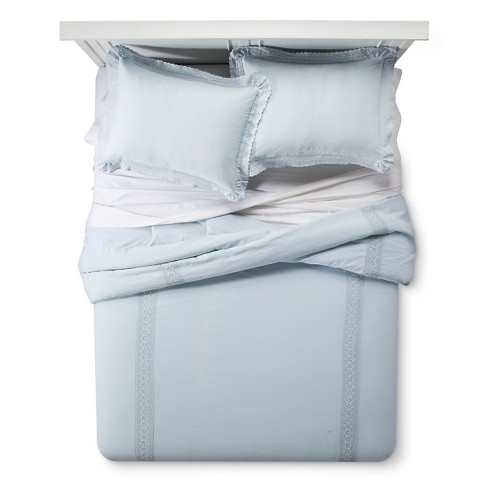 Blue Crochet Trim Linen Blend Comforter Set Twin 2 Pc Simply