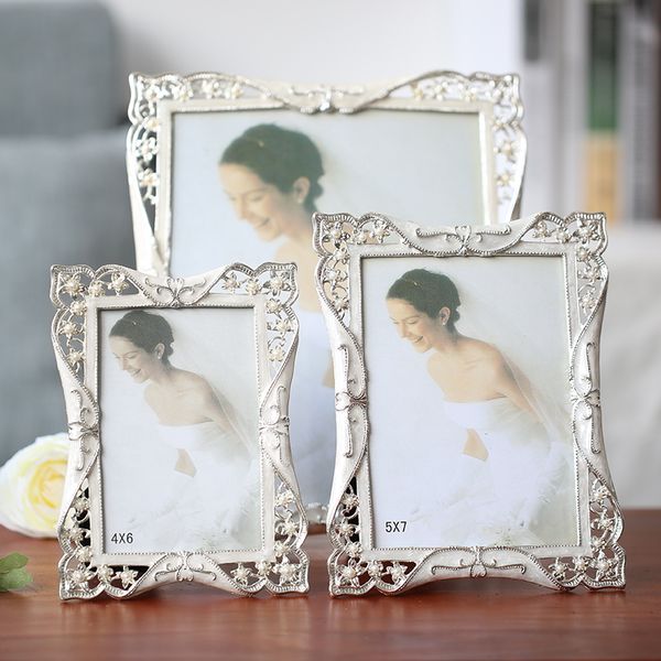 Antique Argente Metallique Decoration Cadre Photo 8×10