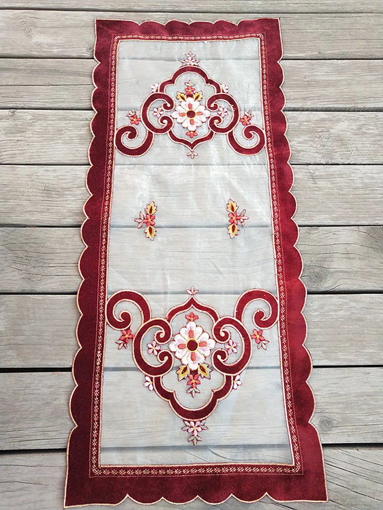 Acheter Nouvelle Dentelle Rouge Broderie Table De Lit Chemin De
