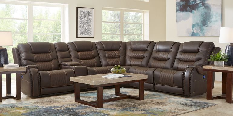 Shop Bastian Aniline Leather Dark Brown L Shaped Sectionals By