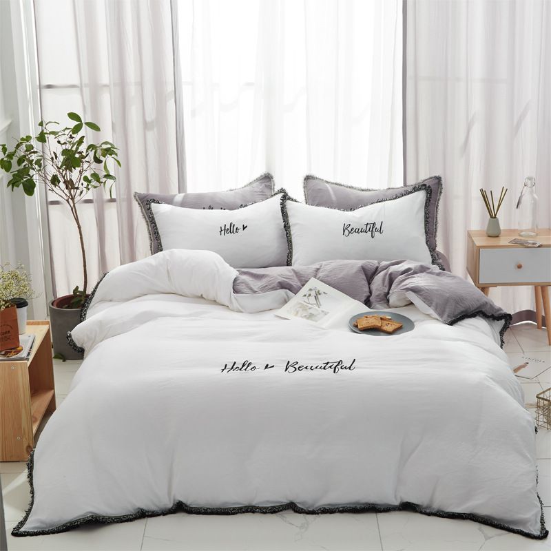 Classique Ensemble De Literie En Coton Noir Et Blanc Home Textile