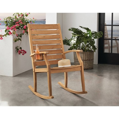 Logan Teak Patio Rocking Chair With Cup Holder Light Brown