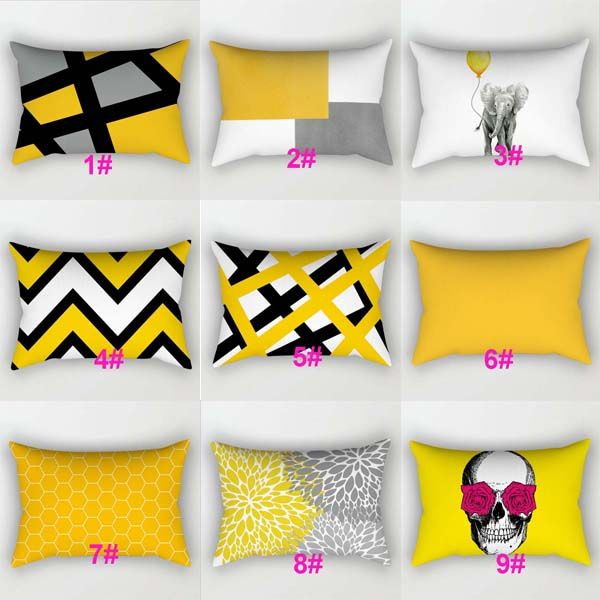 Acheter Jaune Gris Geometrique Housse De Coussin Decor A La Maison