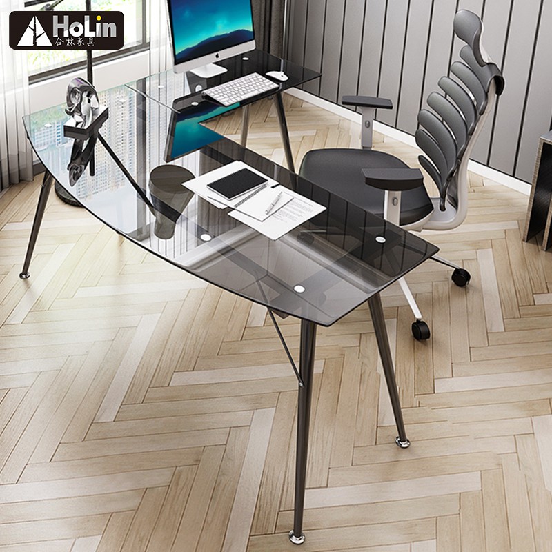 Hollin L Shaped Desk Tempered Glass Office Computer Corner Table