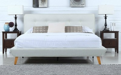 Mid Century Linen Low Profile Platform Bed Frame Tufted Headboard Queen Ivory 647923467819 Ebay