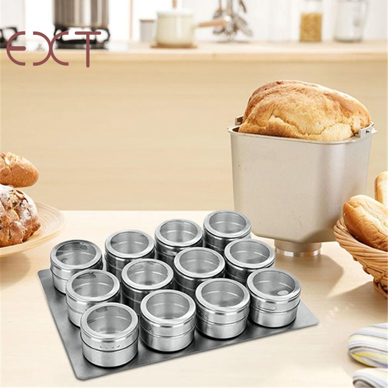 Hmdc 9 12pcs Stainless Steel Magnetic Spice Jars Cruet Condiment