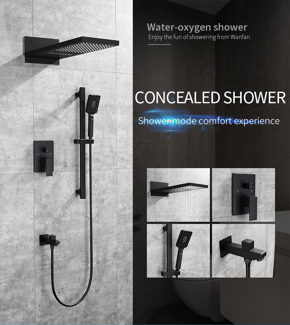 2020 Shower Faucets Matte Black Wall Mount Bathroom Faucet Set