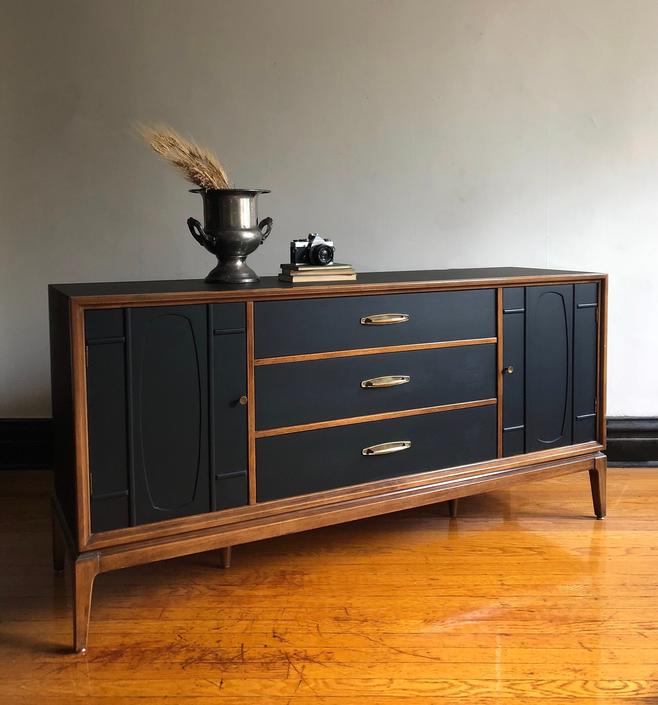 Black And Wood Mid Century Modern Credenza Vintage Modern Media