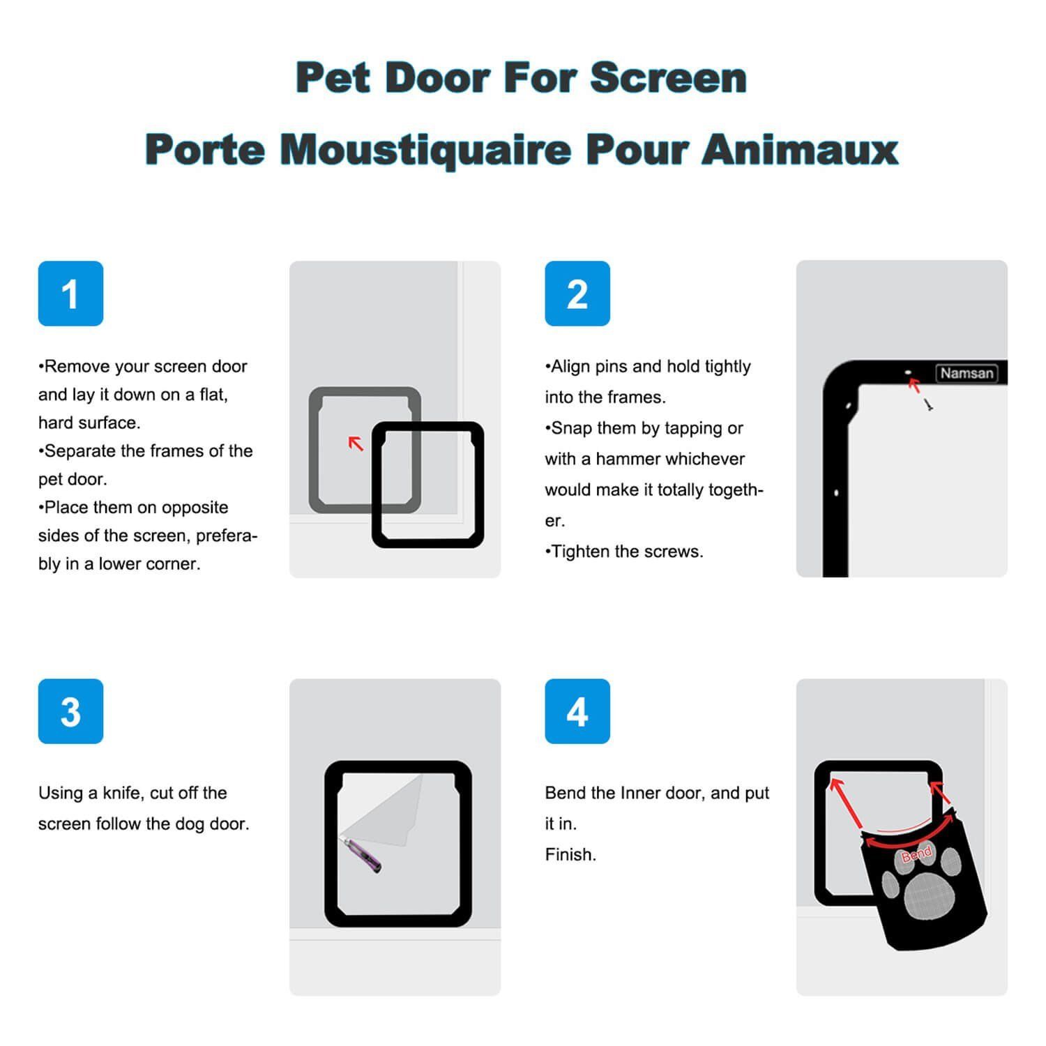 Porte facile dinstallation compatible avec toutes les portes patio et moustiquaires de fenetre. Facile a installer la porte moustiquaire pour animaux convient a toutes les moustiquaires en metal ou en plastique ainsi quaux portes et aux fenetres. La porte moustiquaire etait moins de 5000 chez reno depot mais je ne me.
