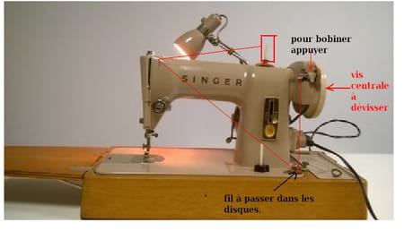 Remplissage de la canette enfilage de la machine etc. La machine a un porte canette qui se souleve mais qui ne senleve pas donc a priori elle pourrait etre du type 15 22. 23 programmes de points.
