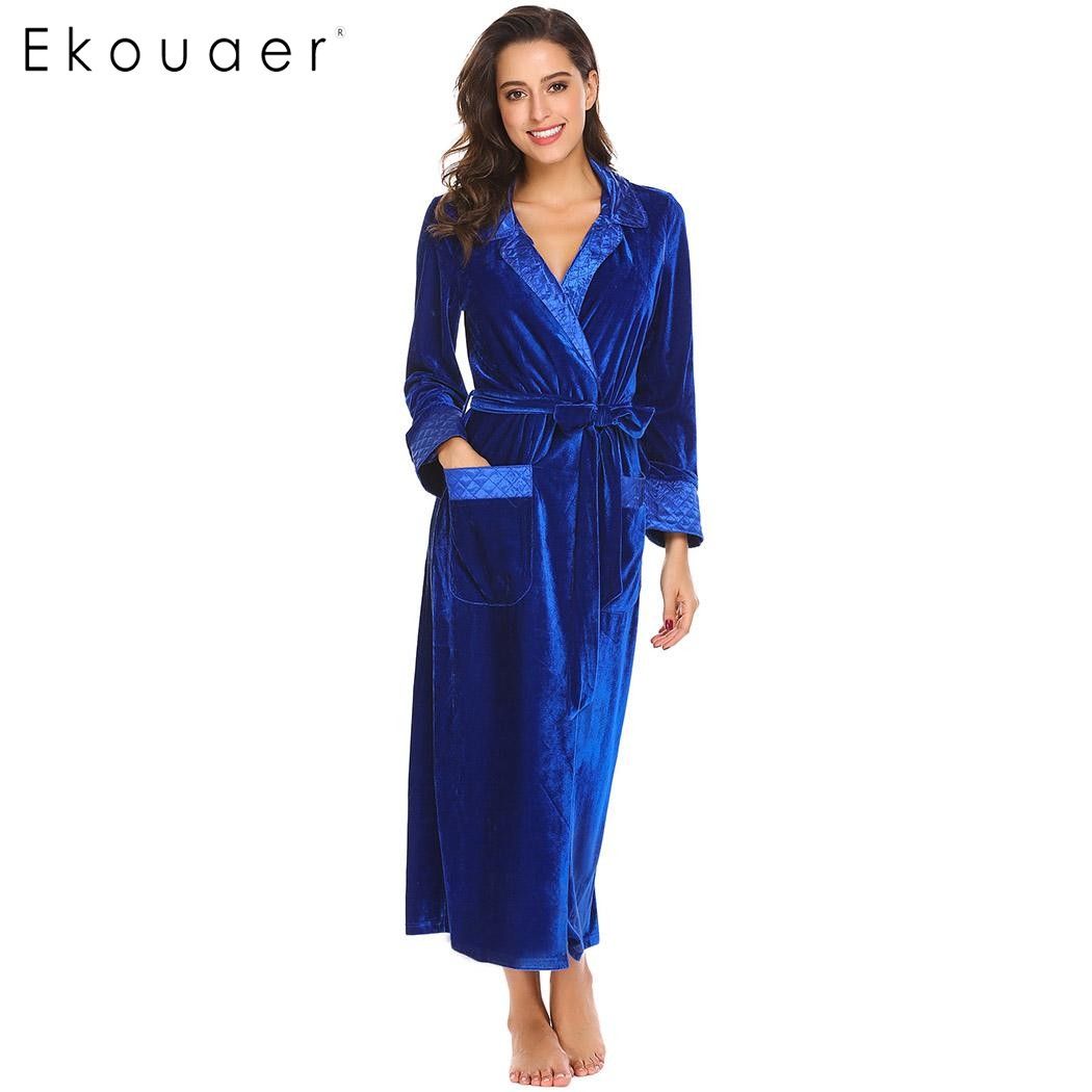 Acheter Ekouaer Flanelle Robe Longue En Soie Femmes Manches
