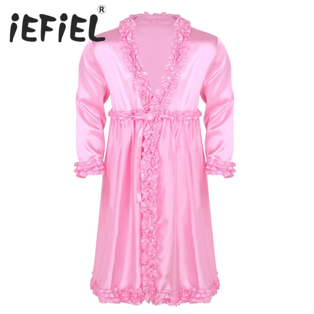 Acheter Mode Hommes Mens Sissy Satin Soyeux Robe De Chambre