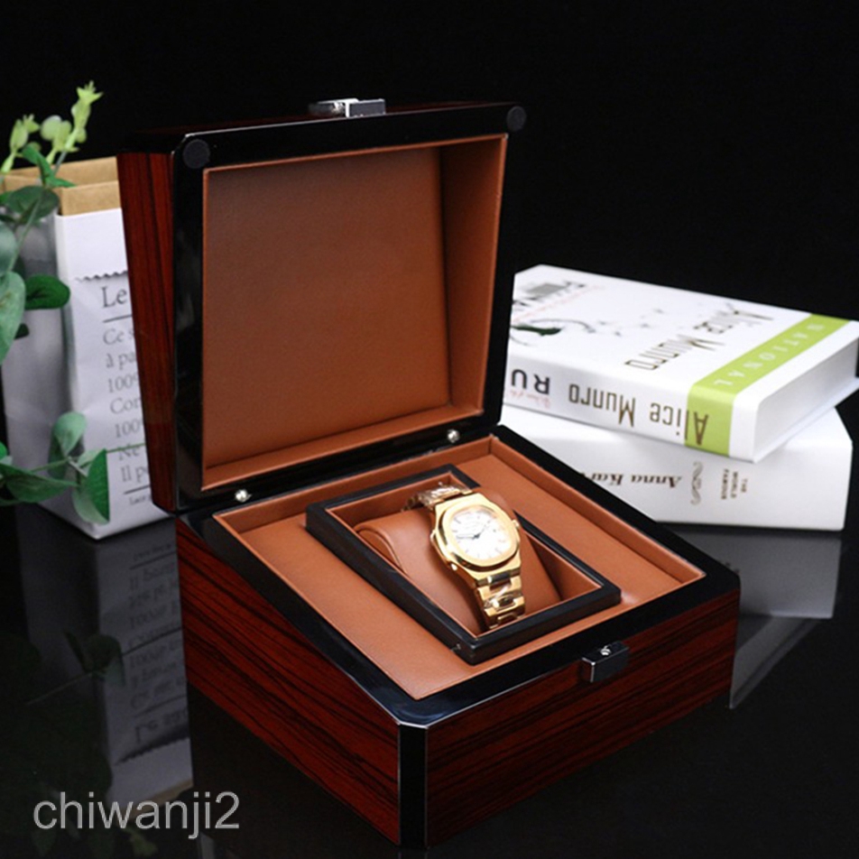 Wooden High Gloss Paint Solid Wood Single Watch Box Pu Leather