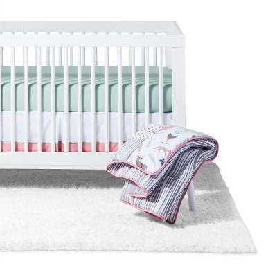 Coral Mint And Grey Woodsy Deer Baby Bedding 9pc Girls Crib Set