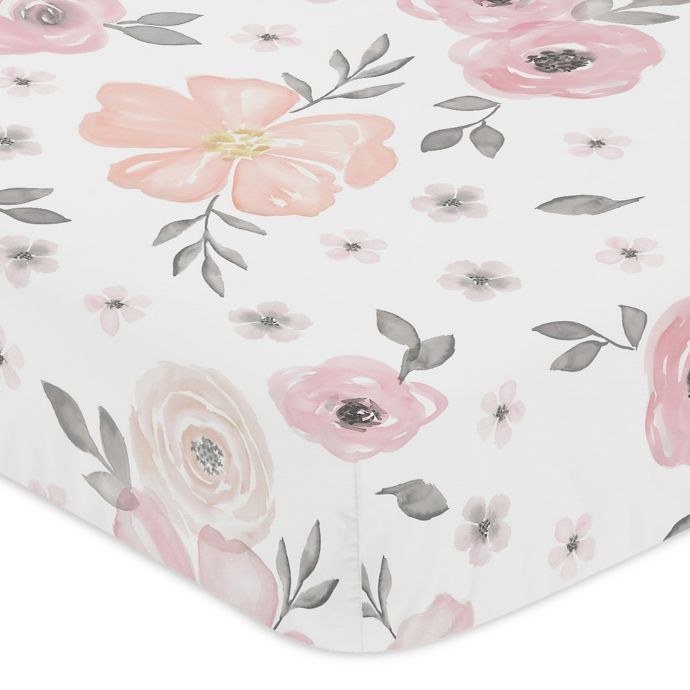 Sweet Jojo Designs Watercolor Floral Fitted Crib Sheet In Pink