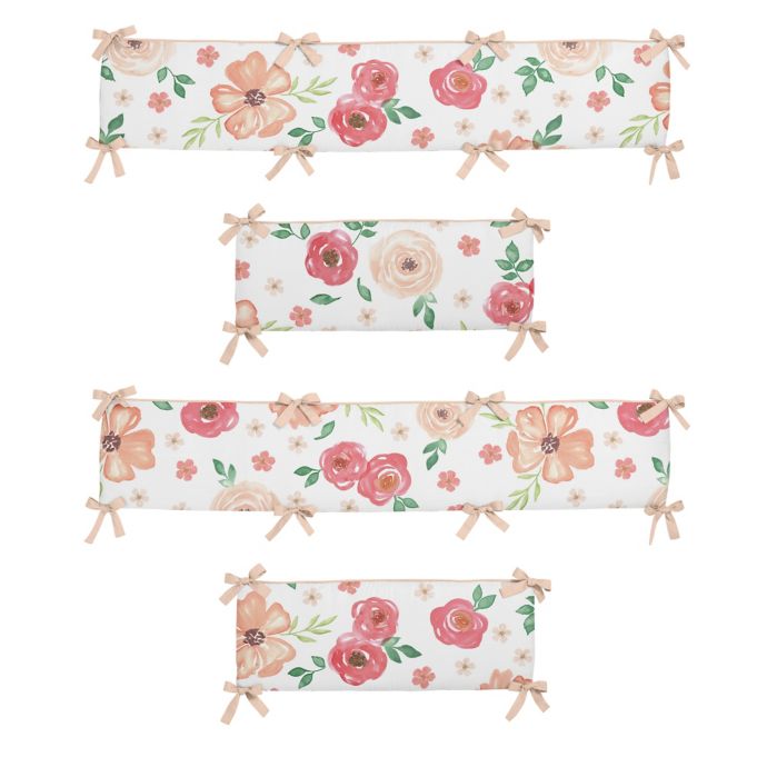 Sweet Jojo Designs Watercolor Floral 4 Piece Crib Bumper Set In