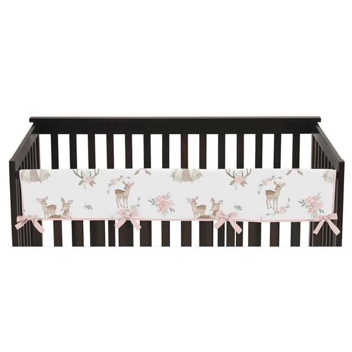 Sweet Jojo Designs Floral Deer Long Rail Guard In Pink Mint Bed