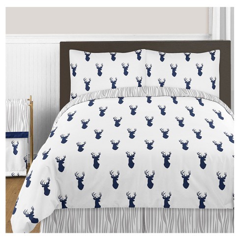 Full Queen Woodland Deer Comforter Set Navy White Sweet Jojo