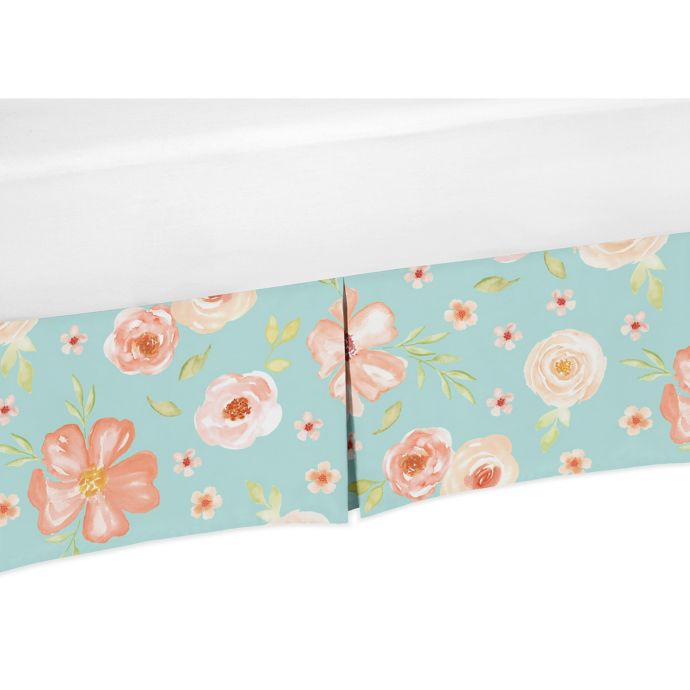 Sweet Jojo Designs Watercolor Floral Crib Skirt In Turquoise Peach
