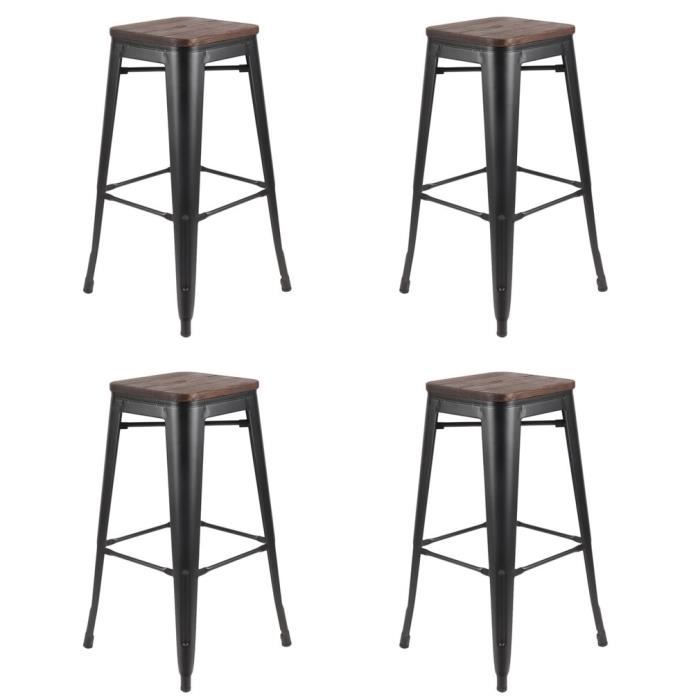 Tabouret De Bar Design Industriel Harlem Lot De 4 Noir Achat
