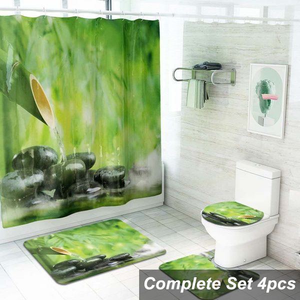 Tapis De Bain Toilette 4 Pieces Ensemble Rideau De Douche Tapis