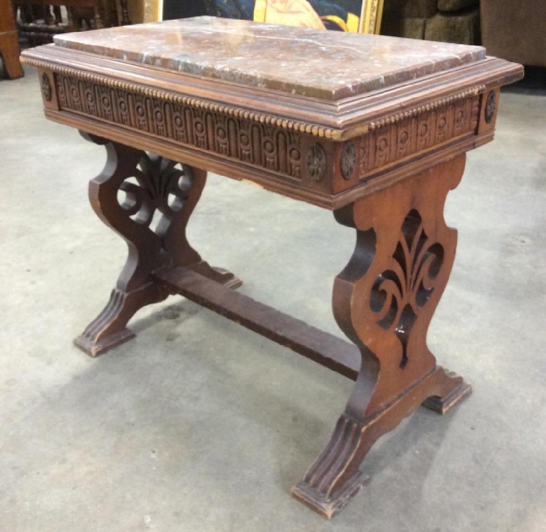 Lot Art Vintage Carved Walnut Side Table With Marble Top By